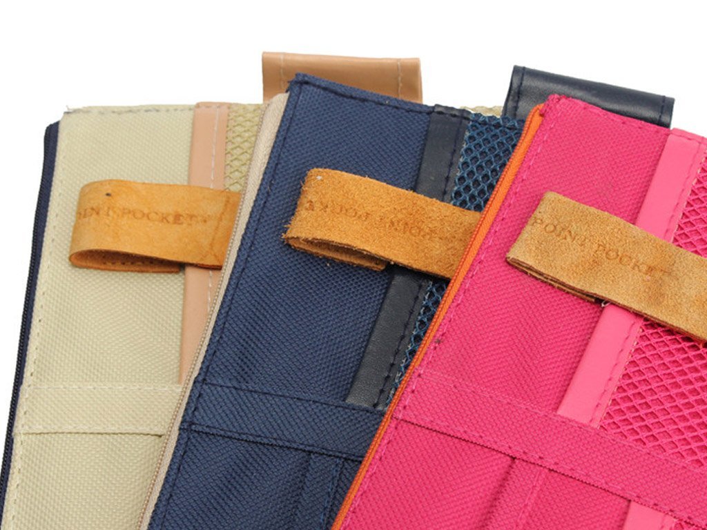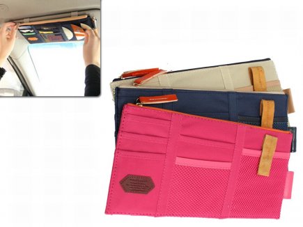 Bilorganisatör för kort, papper, mobiltelefon och andra små saker. Den kan enkelt fästas med en resår på en fönsterskärm och allt kan vara inom räckhåll. Bra present för förare. Finns i 3 basfärger!