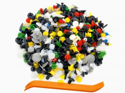Universella skruvar och pluggar för bil. Blandning av 200 st i olika färger.