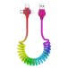 Höj din laddningsarsenal med denna fjäderbelastade 3-i-1 USB-kabel som kombinerar funktionalitet och elegant design. Den är gjord för snabbladdning och höghastighetsdataöverföring och har tre olika kontakter för maximal enhetskompatibilitet.