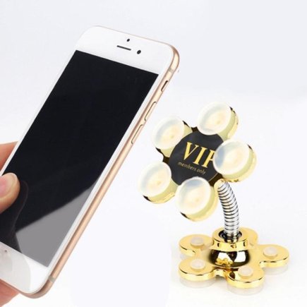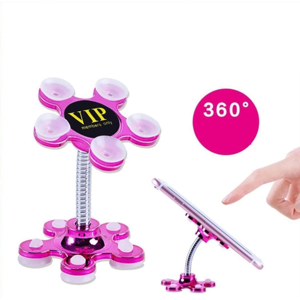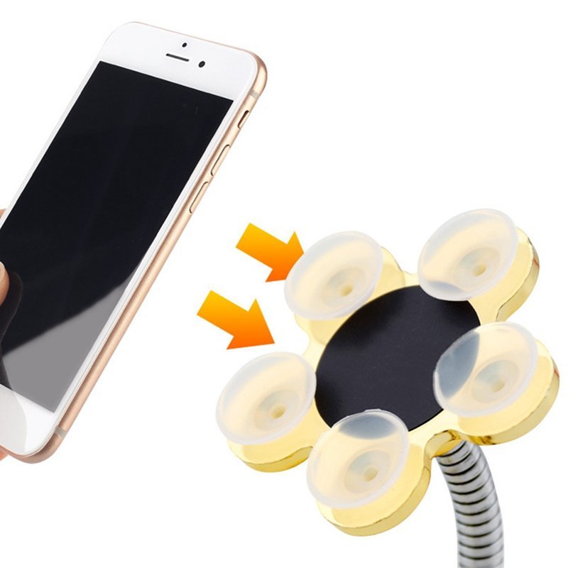 Mobil- eller surfplattahållaren med sugkoppar är väldigt flexibel. Du kan vrida den 360° eller luta den åt båda hållen. Ett starkt sugkoppssystem håller enheten stadigt på vilken plan yta som helst, i en bil på instrumentbrädan eller glaset, på ett skrivbord på kontoret eller köket, på en spegel eller kakel i badrummet. Det låter dig enkelt läsa eller titta på videor på din mobila enhet utan att behöva hålla i enheten.