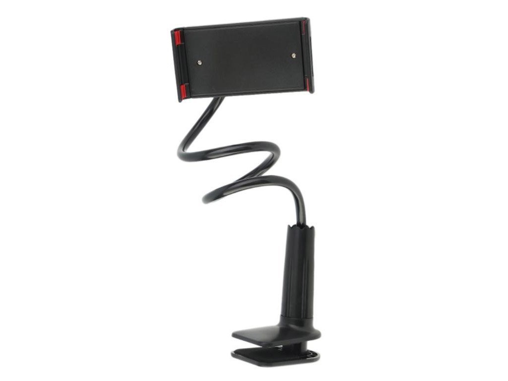 Formbar lång hållare för surfplatta eller mobiltelefon. Flexa och rikta det enligt dig. Fäst den på skrivbordet, stolen, soffan, köksdisken, bilfönstret - när du behöver och du kan titta på filmer, ringa videosamtal eller spela in en video. Titta på din surfplatta från nya former!