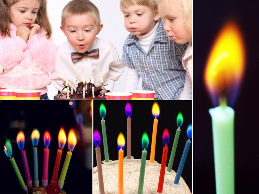 Produktbeskrivning 12 födelsedagsljus med Mångfärgad Låga FRI FRAKT