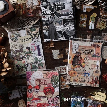 Denna klistermärkebok är fylld med en mängd unika och iögonfallande mönster. Design inspirerad av vintageillustrationer kommer att ge variation till dina dagböcker och ge dem liv kreativt.