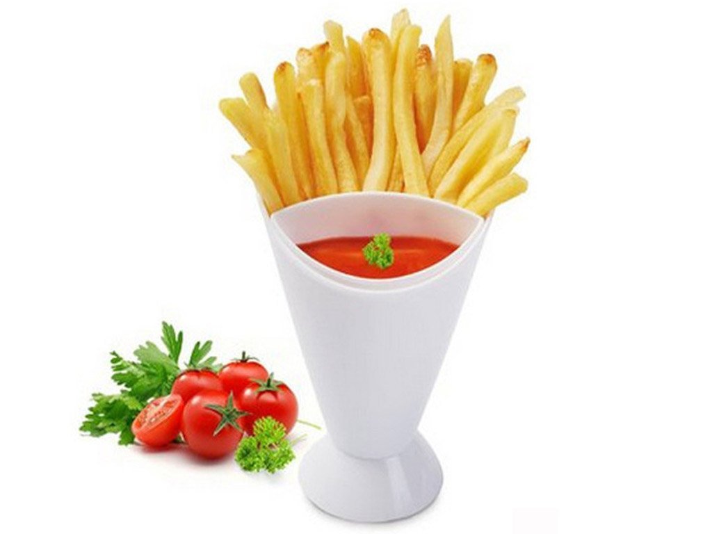 Älskar du pommes frites lika mycket som vi? Vill du ta dem till trädgården eller bara gå runt i lägenheten? Använd det här fantastiska och praktiska stativet, där du inte bara kan sätta dina pommes frites utan också ditt favoritdopp.