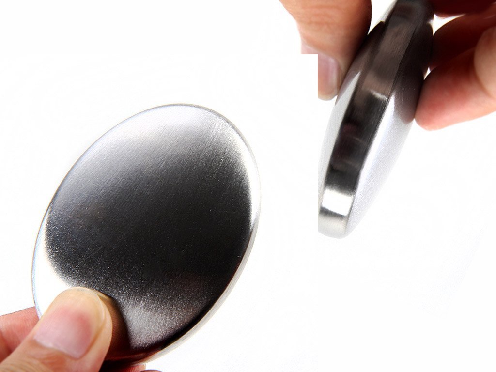 Tvål av rostfritt stål är en effektiv lösning mot irriterande lukt på händerna (efter vitlök, fisk eller olja och så vidare). Gnida bara händerna med varmt vatten och sedan med tvål i rostfritt stål. Och dina händer blir fräscha utan lukt igen. Tvål förblir och fungerar utan användning av kemiska tillsatser.