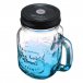 Trendig glaskanna med handtag, lock och dricksstrå kommer att dekorera ditt bord perfekt på en fest eller vid en pool! Vintageglaset är genomskinligt med en färgad botten.