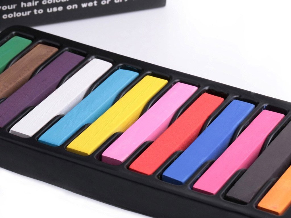 Hårkritor i 4 eller 12 färger kommer att färga och återuppliva ditt hår. Färgen är lätt att tvätta och skadar inte håret. Perfekt för fest frisyrer!