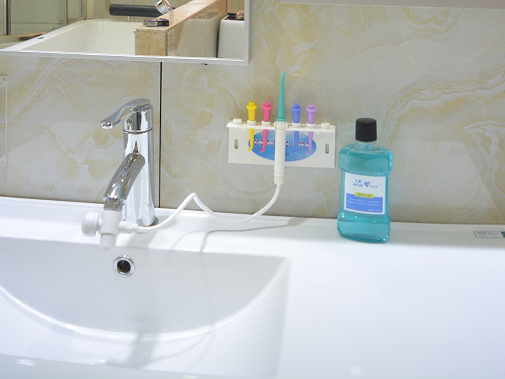 Med munduschen kan du enkelt rengöra mellanrummen och andra svåråtkomliga platser, ta bort oönskad plack från tänderna och mellanrummen. Anslut enkelt till kranen och kontrollera vattenflödet med en kran.