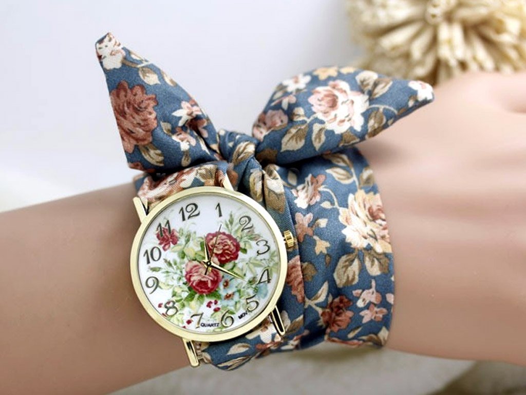Snygg bandanna armbandsur tillgänglig i 19 design. Informell bandanna klocka i 70-talsstil är bekväm och snygg.