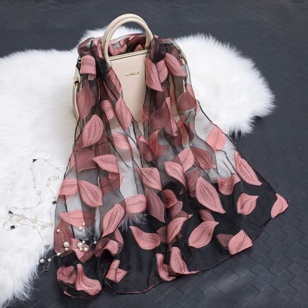 Originaldesign med bladmönster - välj den här halsduken i din favoritfärg så kan du bära den varje dag.