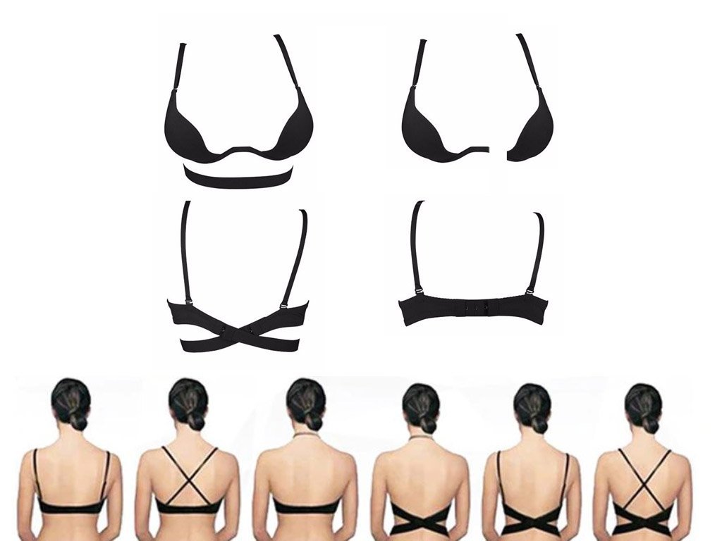 Push-up-bh för hypnotiserande nedkastning. Perfekt för klänningar med utskjutande halsringning. Olika alternativ för fästning och olika bandalternativ - kors eller runt halsen. Expanderande midjeband ingår, inte bara för att göra din behå större utan också för korsfästning. Skapar en fylligare byst och en djup halsringning. Din halsringning kommer att vara oemotståndlig.