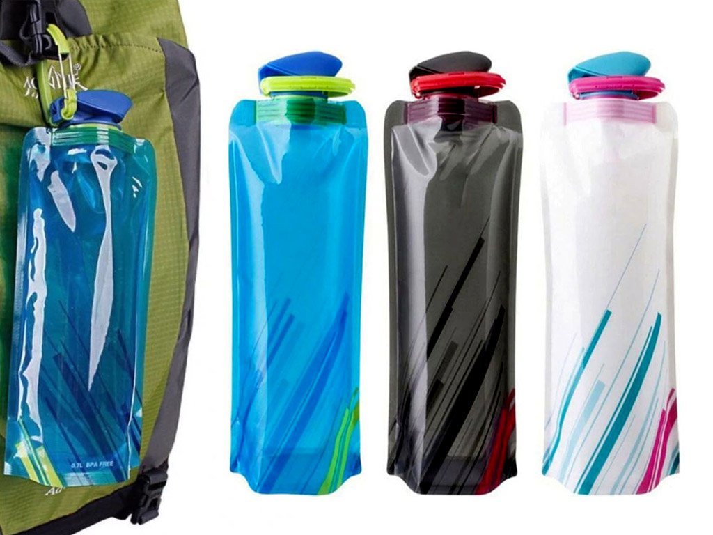 Denna praktiska vattenflaska får inte missa av någon idrottare, turist eller någon som alltid behöver ta en drink till hands. Flaskan är vikbar och hopfällbar, så det är det bästa tillbehöret för vandringar, resor och idrottare.